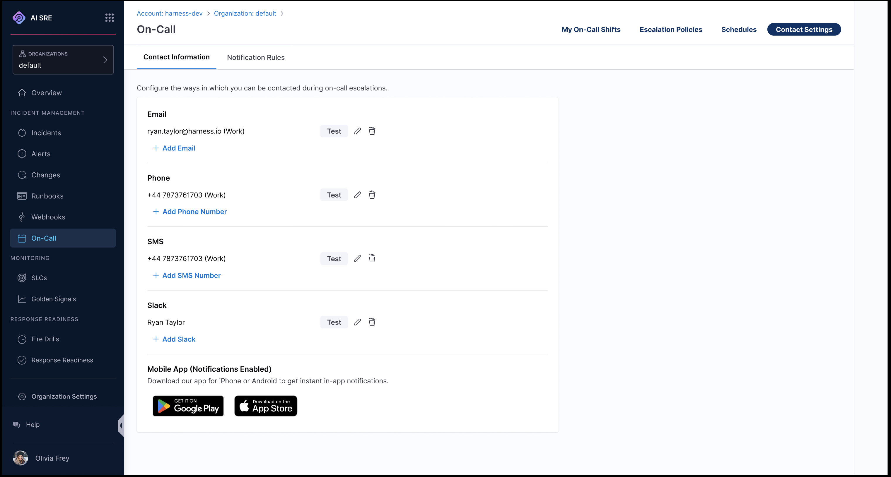 - Install Mobile Apps: Download "Harness on-call" from Google Play Store or iOS App Store