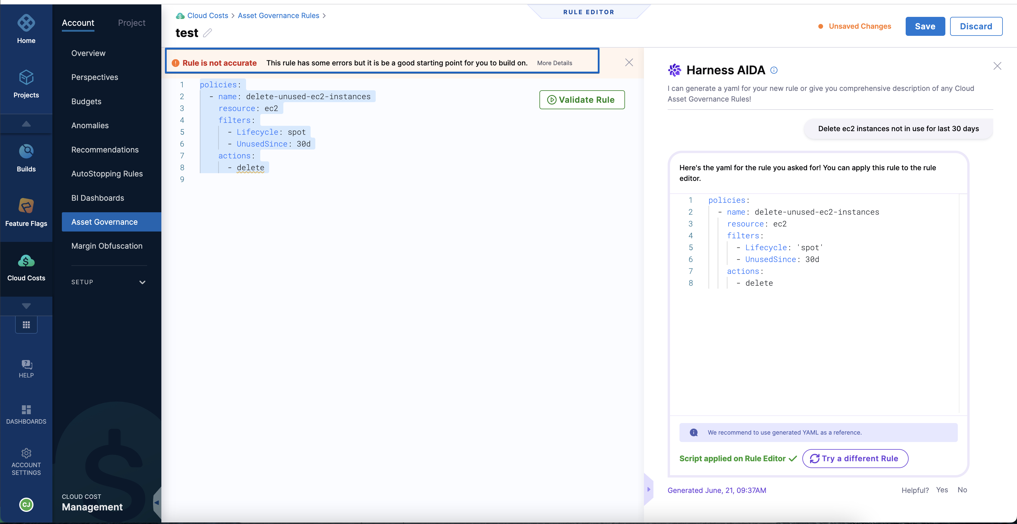 Create a rule by using Harness AI