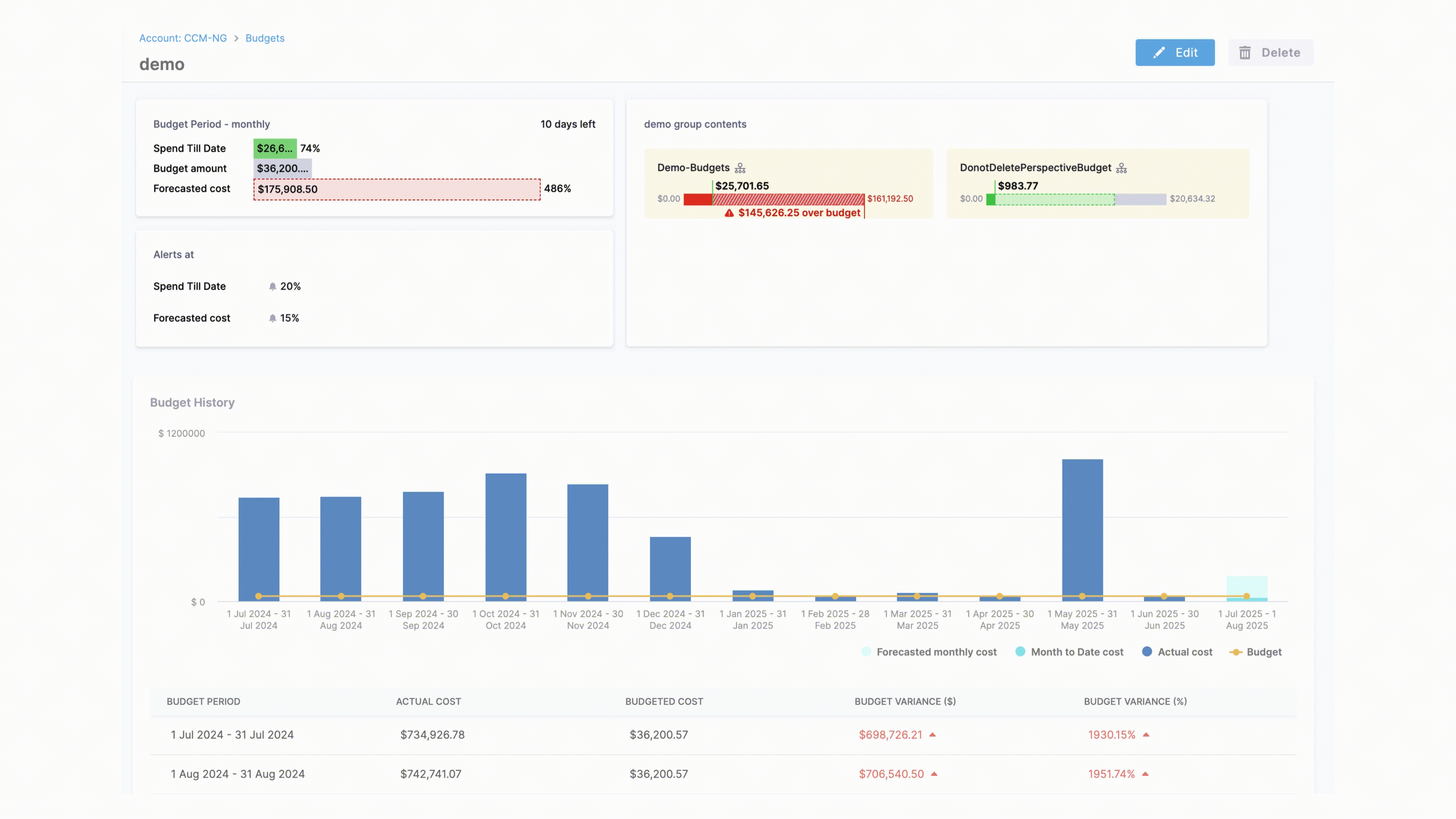- Actual Cost: Real-time comparison of spending against your budget limit
