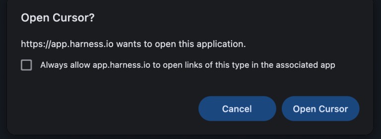 app.harness.ioto open Cursor and establish a connection. Click on Open Cursor.