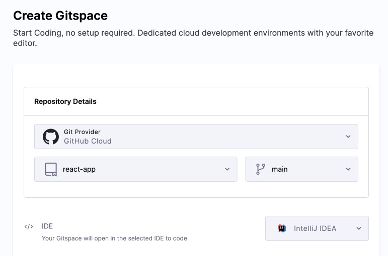 Click Create Gitspace.