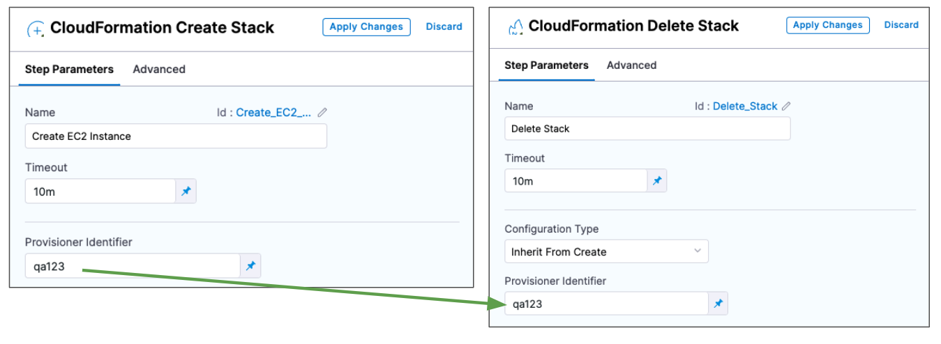 • Inherit from Create: removes the resources defined in the Harness Create Stack step that you identify using the same Provisioner Identifier.