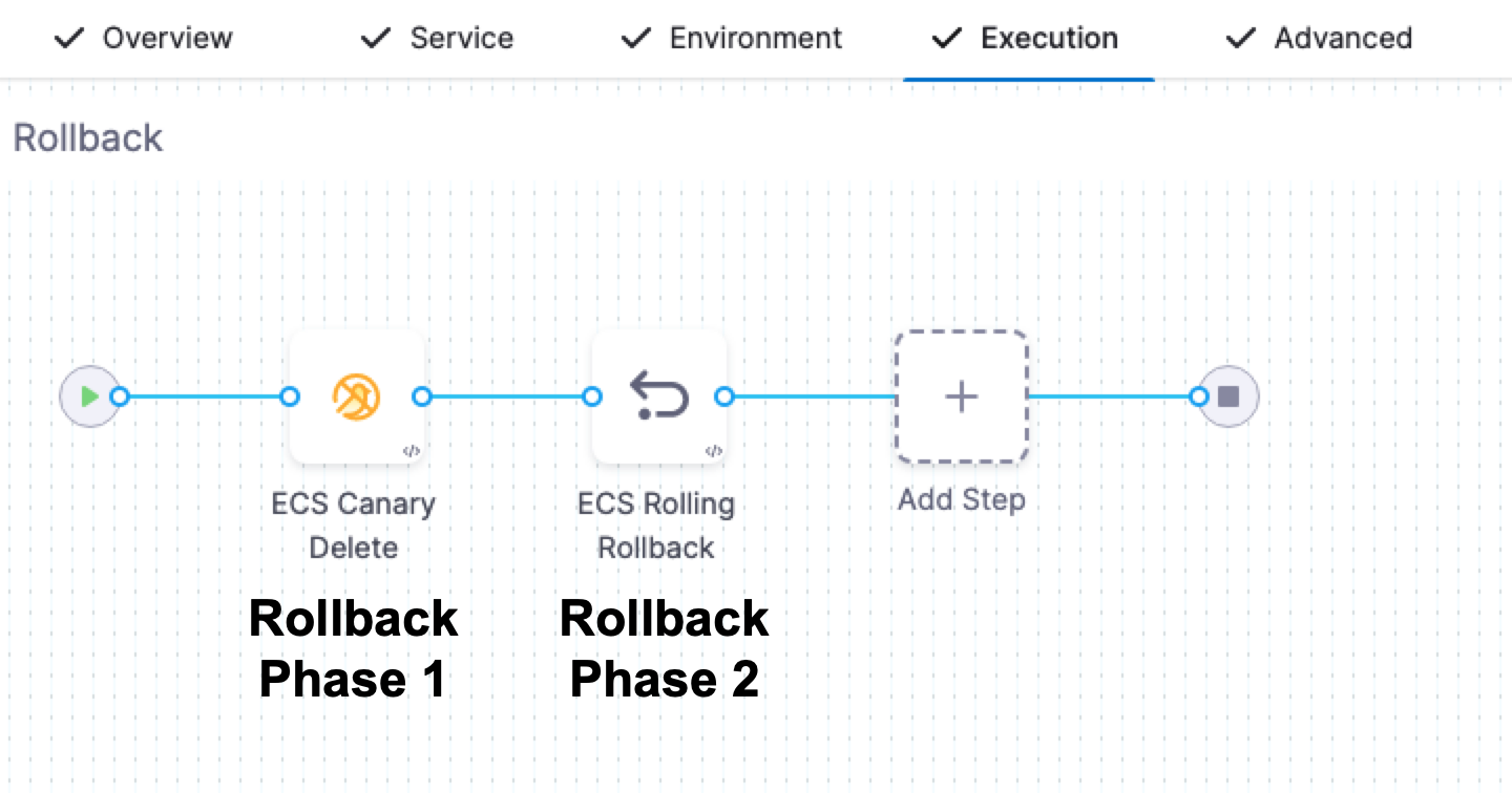 - ECS Service Setup prepares rollback data at the start of deployment.