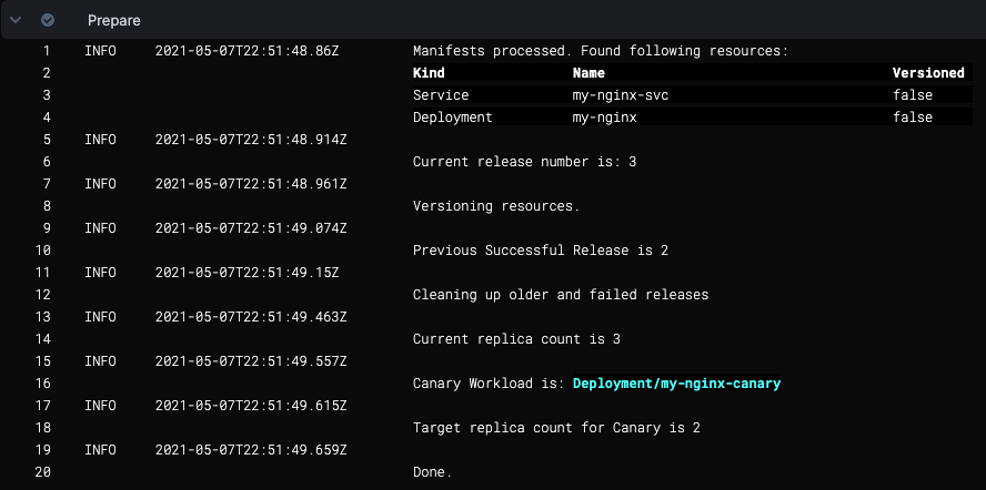 Since the Canary Deployment step was successful, it is no longer needed. The Canary Delete step is used to clean up the workload deployed by the Canary Deployment step. For more information, go to Canary Delete Step.