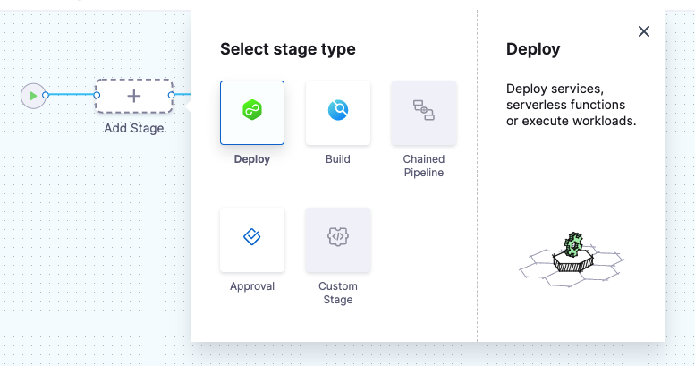 Each stage has a service and target Infrastructure. If your Pipeline has multiple stages, you can deploy the same service to multiple infrastructures.