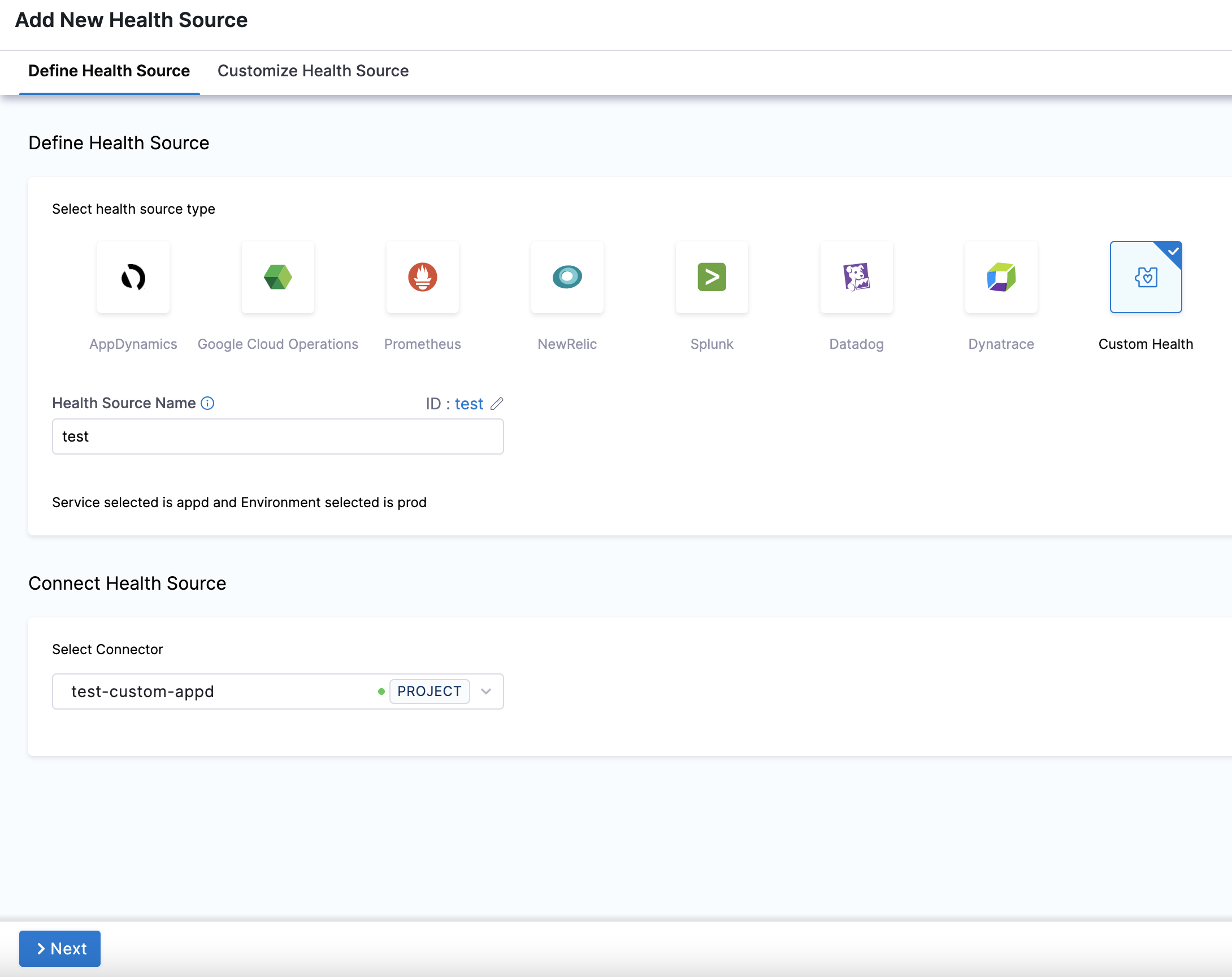1. In Select health source type, select Custom Health.