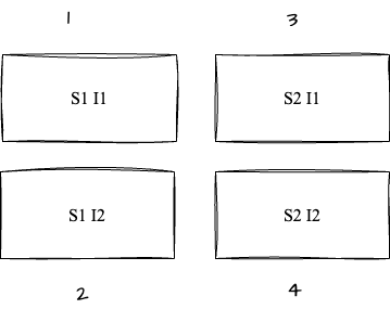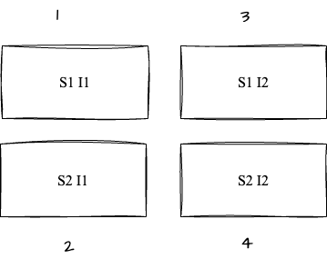 S1 I1 -> S2 I1 -> S1 I2 -> S2 I2