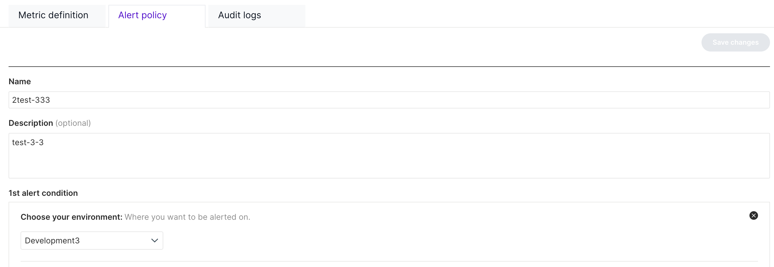 Select a metric on which you would like to alert. The full details on configuring an alert policy are found in Harness FME's metric alerting guide.