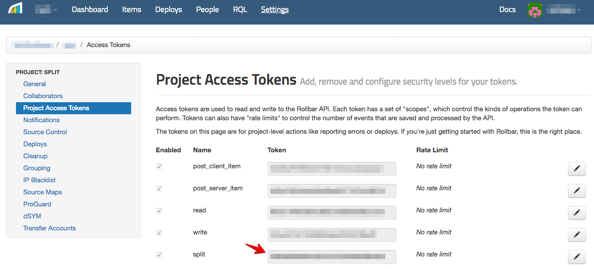 Paste the token you copied in step 3 of the Rollbar instructions.
