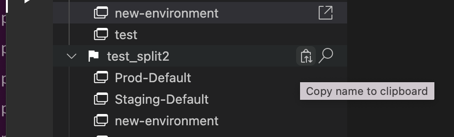 To copy the feature flag name, hover over the desired flag and click the copy icon. The name is copied to clipboard.