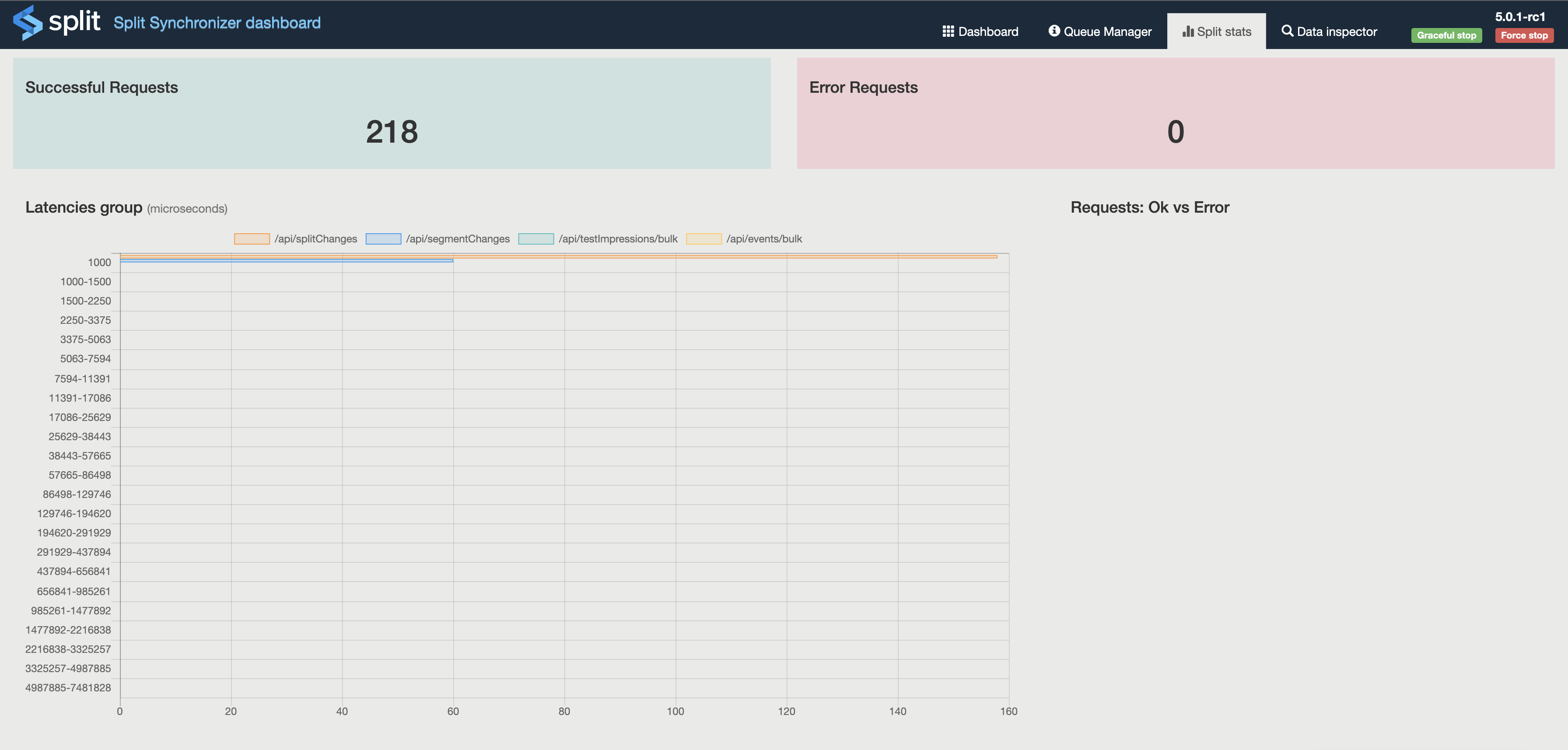 - SDK stats: Metrics numbers and a latency graph, measured between SDKs requests integration and proxy.