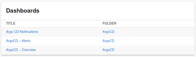 title: title of the dashboardtags: array of tags defined by the dashboardurl: URL of the dashboardfolderTitle: title of the folder in which the dashboard is definedfolderUrl: URL of the folder in which the dashboard is defined