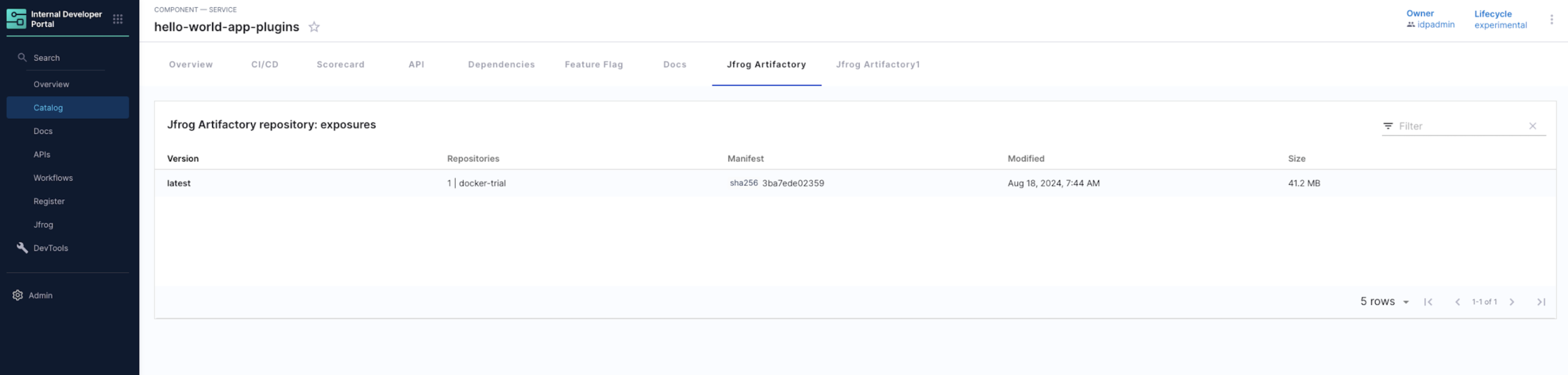 • Artifact details are correlated to IDP entities using an annotation added in the entity's catalog-info.yaml file.