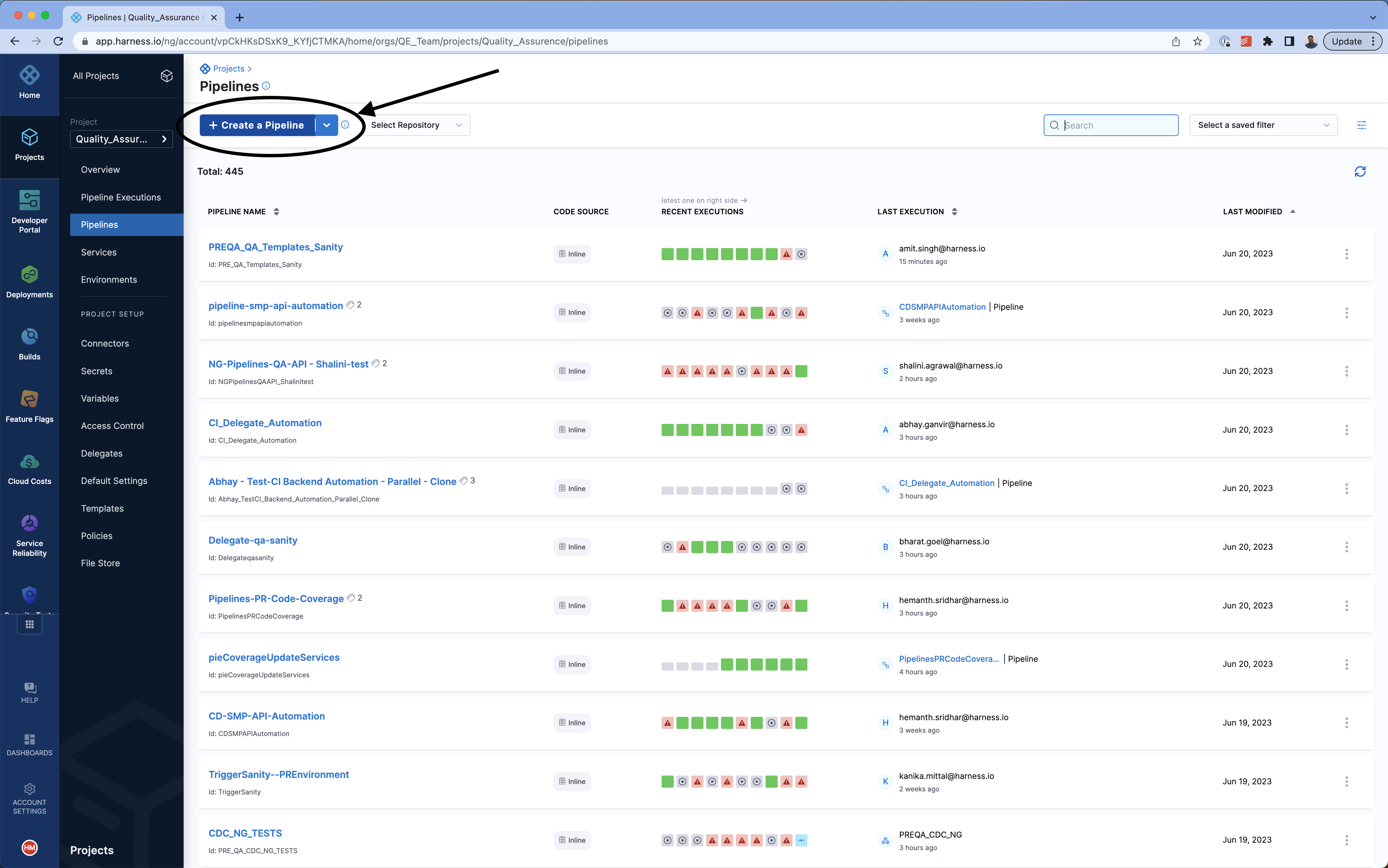 - In the sidebar of the Harness application, select Projects, and then select a project.
