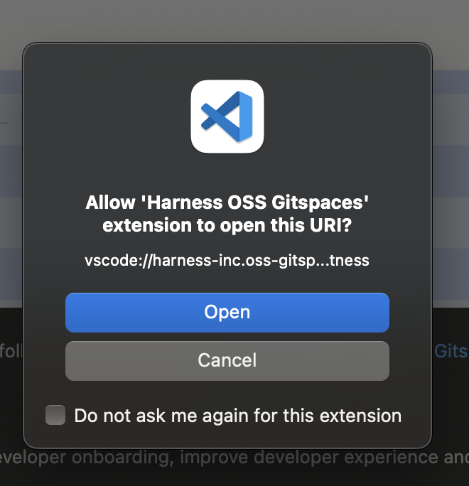 You’ll be prompted to open the Gitspace inside your VS Code IDE. Click “Open.”