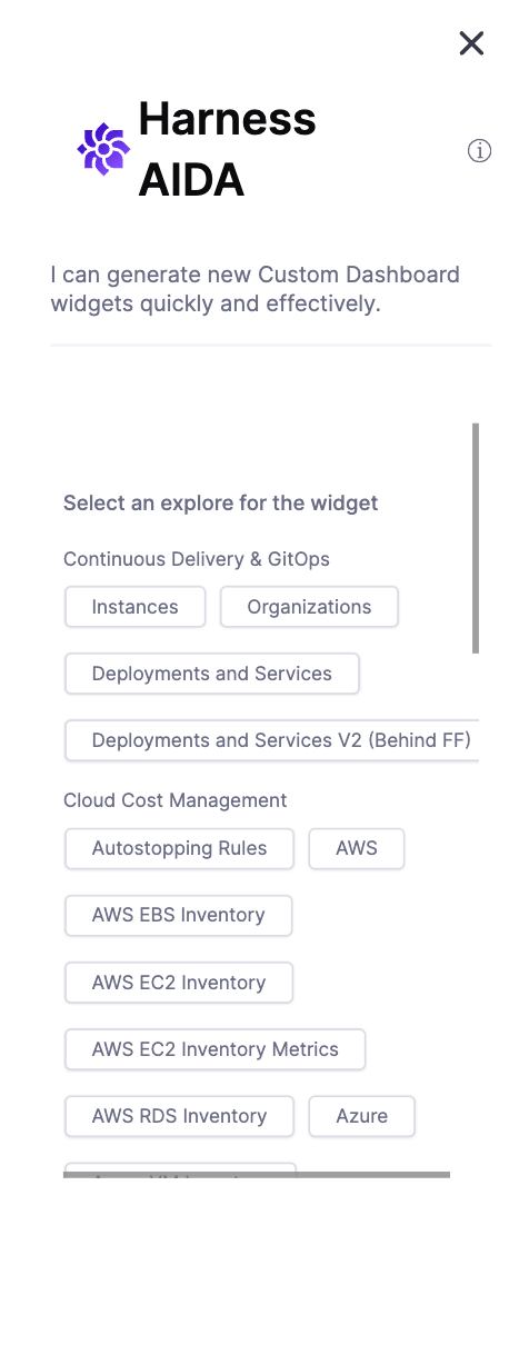 You first create your dashboard, and then you ask Harness AI to set up your widget.