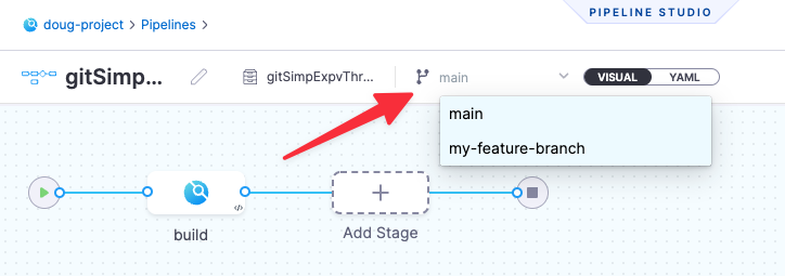 In the Pipeline Input tab, specify the branch name in the Pipeline Reference Branch field.