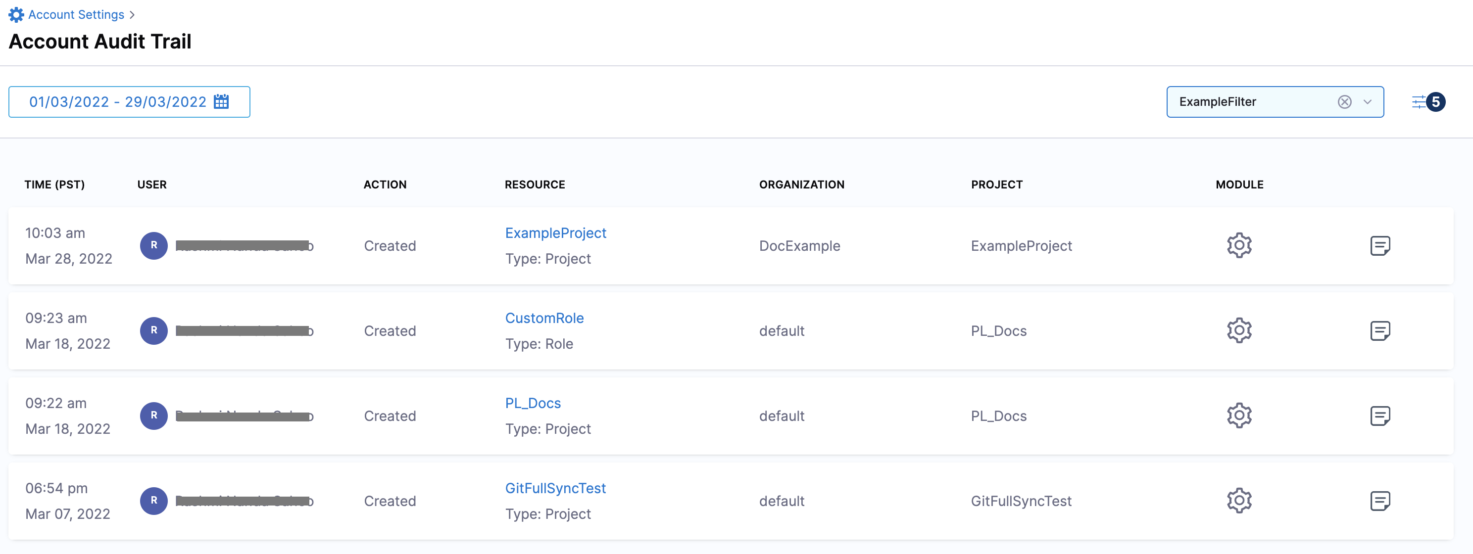 An audit trail is a chronological record of all key actions performed within the system. It shows who did what, when, and where, helping you track changes and activities in your Harness account.