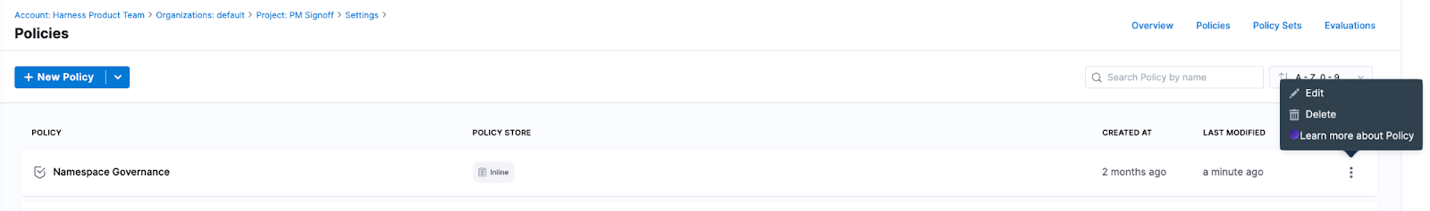 Using Harness AI, you can describe policies created in the account. This helps users understand the policy at a high level without deep understanding and expertise on REGO. Users immediately know what the policy does and its failure criteria. This knowledge enables users to tweak and improve policies downstream as needed.
