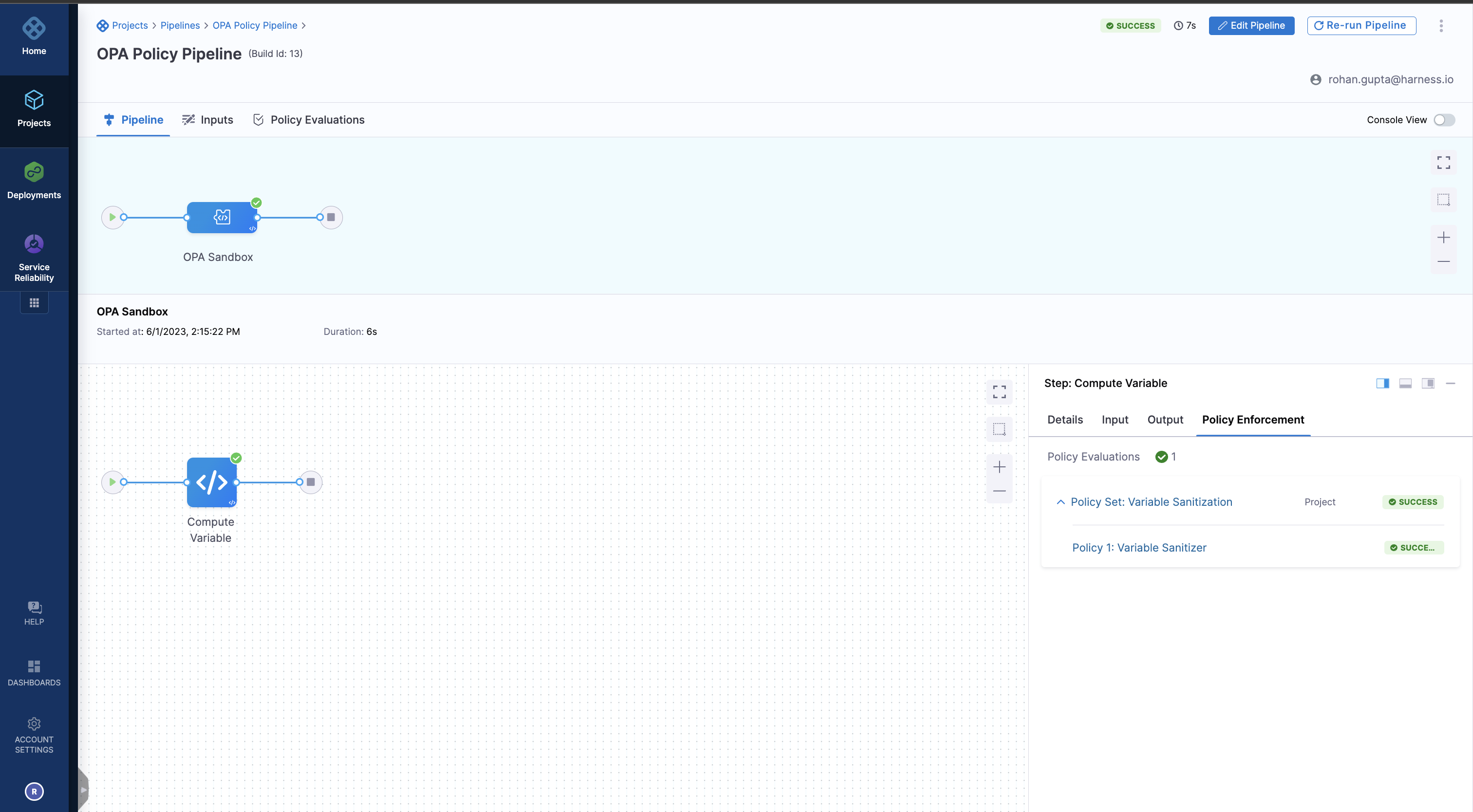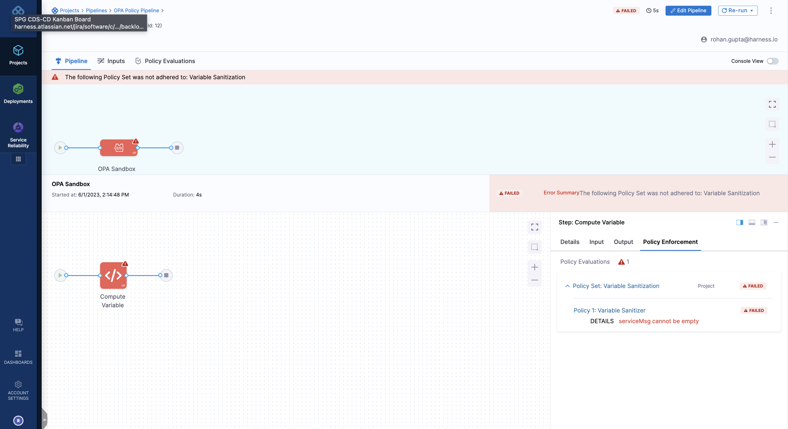 You will see the policy evaluate and the corresponding denial message. If you re-run the pipeline and provide input, you will see the pipeline succeed.
