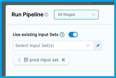 Input sets are collections of runtime input values for a pipeline. Runtime inputs provide placeholders with the expectation that you'll define those values at runtime.