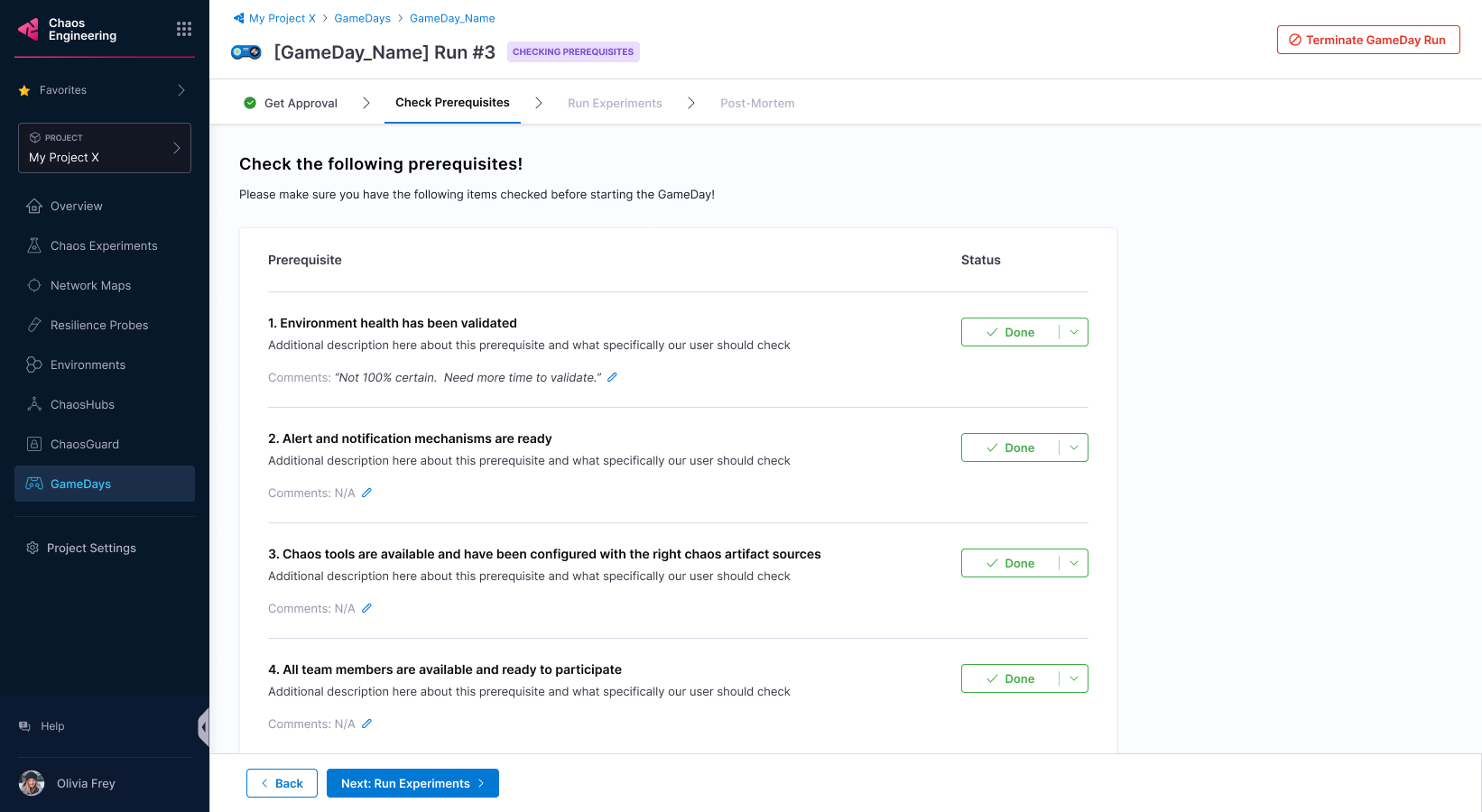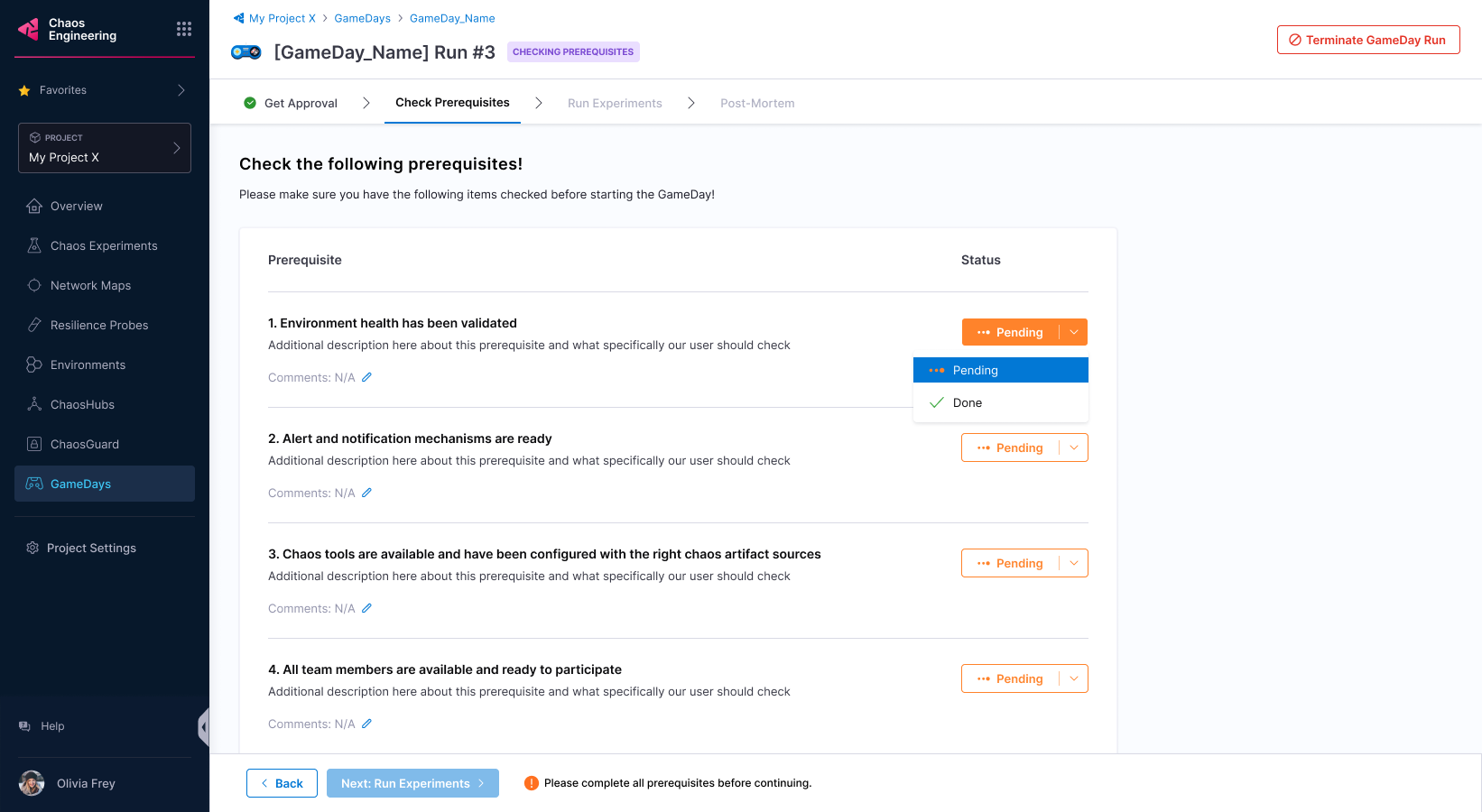 5. Once the stakeholders approve the GameDay run, you can proceed.