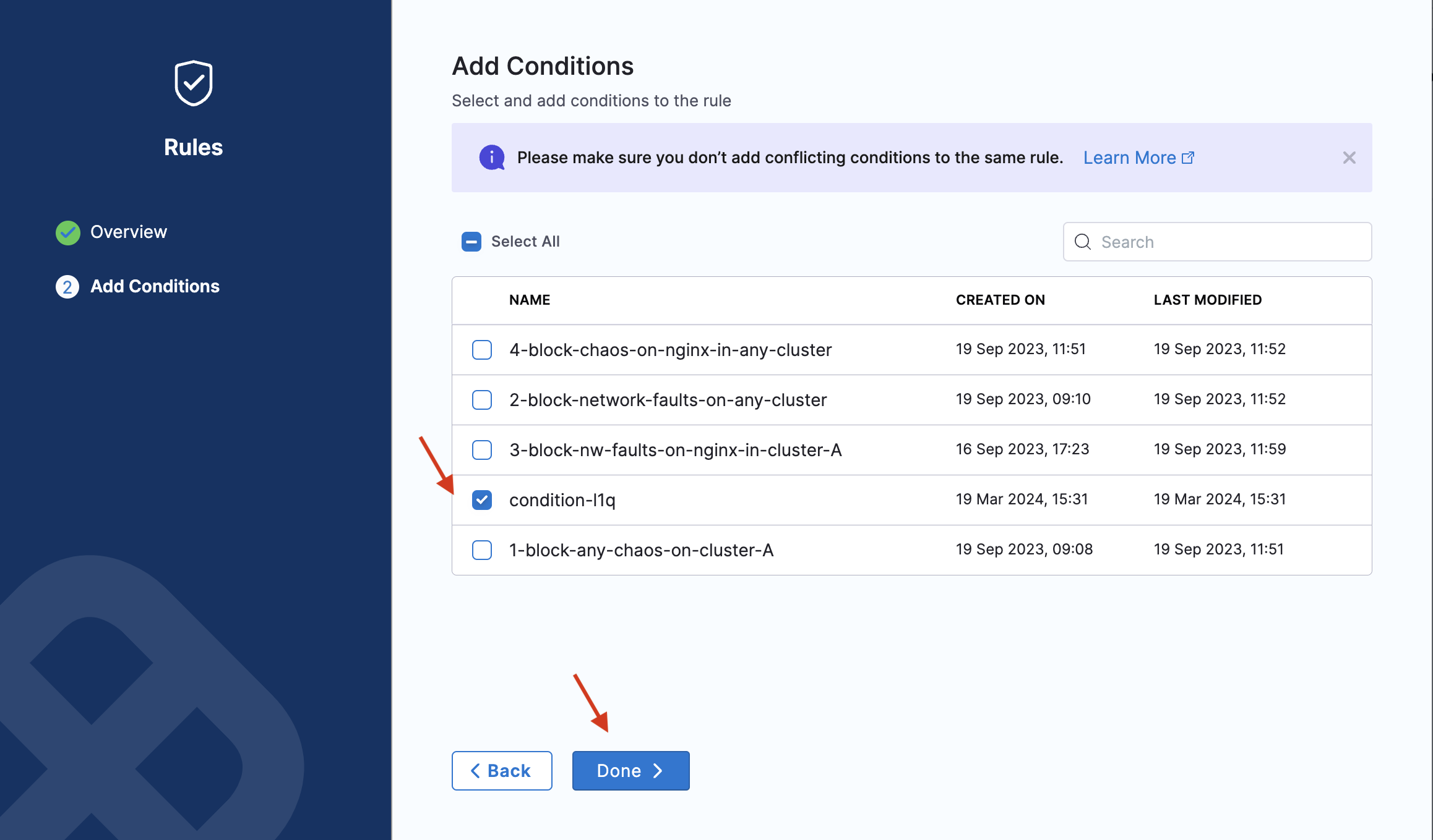 Select a condition (or multiple conditions) that you wish to apply. Click Done.