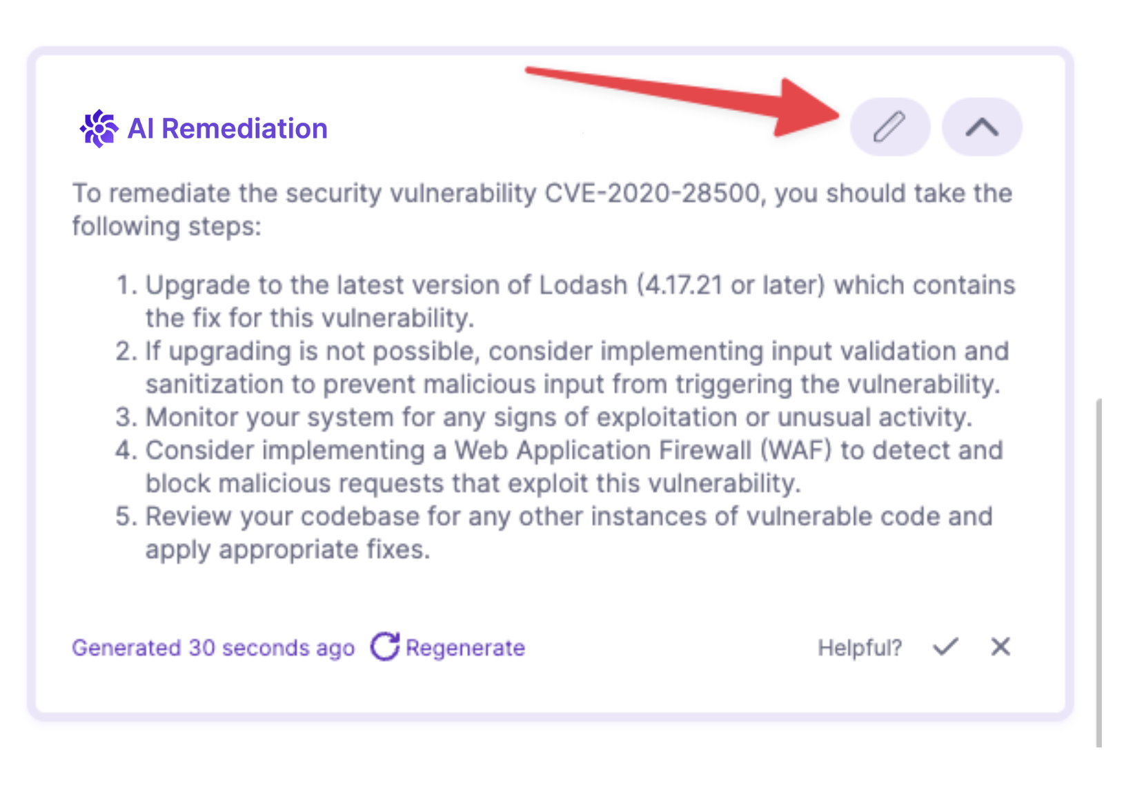 Moreover, you can enhance the AI remediation by editing its content to better suit your needs.