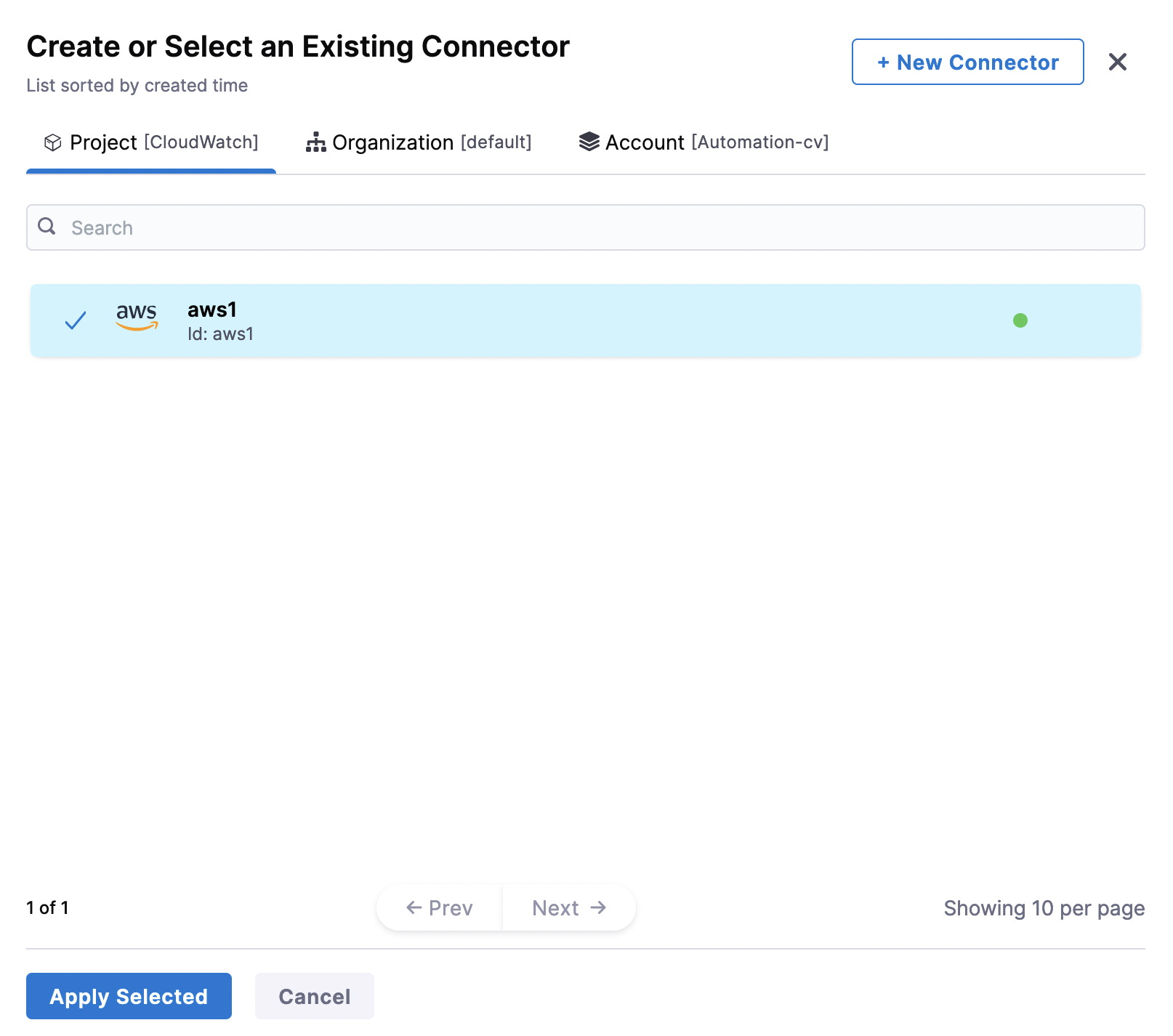 In Connector settings, you can either choose an existing connector or click New Connector.